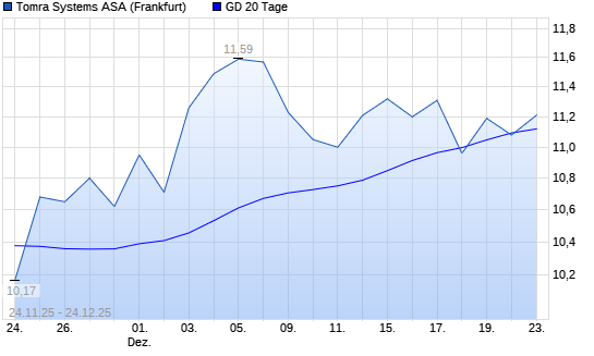 Mit dem Anstieg auf 11,21 EUR hat die Tomra Systems-Aktie am 23.12.2025 die 20-Tage-Linie nach oben gekreuzt.Die Tomra Systems-Aktie befindet sich seit dem 22.09.2025 im langfristigen Abwärtstrend ...weiterlesen