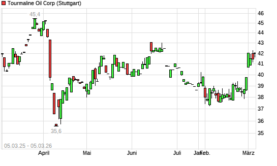 Mit dem Anstieg auf 41,84 EUR hat die Tourmaline Oil-Aktie (ISIN CA89156V1067) am 04.03.2026 ein neues 6-Monats-Hoch erreicht und damit den Kurs vom 02.03.2026 eingestellt.Die ...weiterlesen
