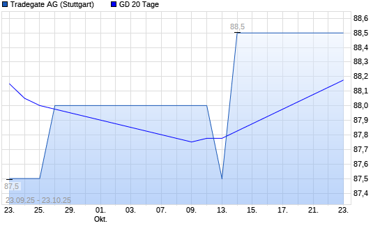 Mit dem Rücksetzer auf 88,00 EUR hat die Tradegate-Aktie am 22.10.2025 die 20-Tage-Linie nach unten gekreuzt.Die Tradegate-Aktie befindet sich seit dem 14.10.2025 im langfristigen Aufwärtstrend ...weiterlesen