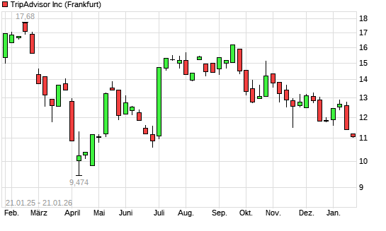 Mit dem Rücksetzer auf 11,07 EUR hat die TripAdvisor-Aktie (ISIN US8969452015) am 20.01.2026 ein neues 6-Monats-Tief erreicht und damit den Kurs vom 19.01.2026 eingestellt.Die TripAdvisor-Aktie ...weiterlesen