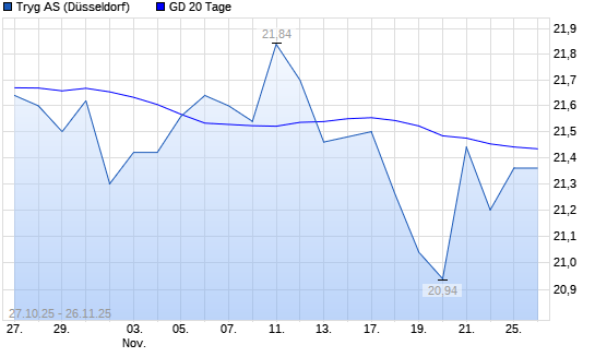 Mit dem Rücksetzer auf 21,16 EUR hat die Tryg A/S-Aktie am 25.11.2025 die 20-Tage-Linie nach unten gekreuzt.Die Tryg A/S-Aktie befindet sich seit dem 14.11.2025 im langfristigen Abwärtstrend ...weiterlesen