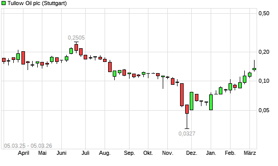 Mit dem Anstieg auf 0,17 EUR hat die Tullow Oil-Aktie (ISIN GB0001500809) am 04.03.2026 ein neues 6-Monats-Hoch erreicht und damit den Kurs vom 02.03.2026 eingestellt.Die Tullow ...weiterlesen