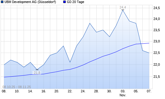 Mit dem Rücksetzer auf 22,60 EUR hat die UBM Development-Aktie am 07.11.2025 die 20-Tage-Linie nach unten gekreuzt.Die UBM Development-Aktie befindet sich seit dem 02.05.2025 im langfristigen ...weiterlesen