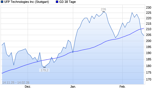 Mit dem Rücksetzer auf 207,40 EUR hat die UFP Technologies-Aktie am 13.02.2026 die 38-Tage-Linie nach unten gekreuzt.Die UFP Technologies-Aktie befindet sich seit dem 18.12.2025 im langfristigen ...weiterlesen