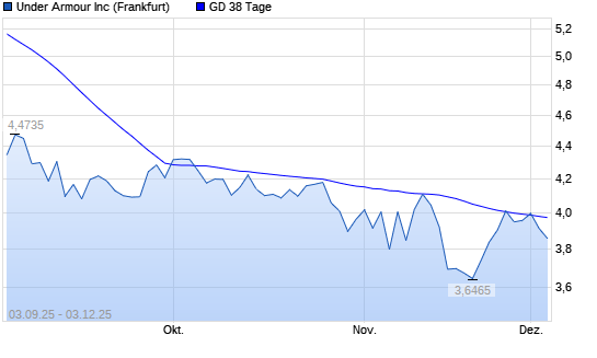 Mit dem Rücksetzer auf 3,92 EUR hat die Under Armour-Aktie am 02.12.2025 die 38-Tage-Linie nach unten gekreuzt.Die Under Armour-Aktie befindet sich seit dem 06.02.2025 im langfristigen ...weiterlesen