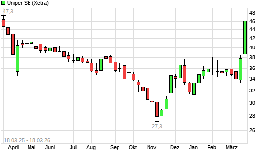 Mit dem Anstieg auf 47,00 EUR hat die Uniper-Aktie (ISIN DE000UNSE026) am 17.03.2026 ein neues 12-Monats-Hoch erreicht und damit den Kurs vom 19.03.2025 eingestellt.Die ...weiterlesen
