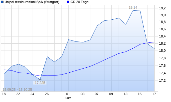 Mit dem Rücksetzer auf 18,00 EUR hat die Unipol Gruppo Finanziario-Aktie am 17.10.2025 die 20-Tage-Linie nach unten gekreuzt.Die Unipol Gruppo Finanziario-Aktie befindet sich seit dem 21.03.2023 ...weiterlesen