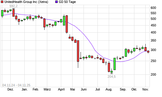 Mit dem Rücksetzer auf 288,00 EUR hat die UnitedHealth Group-Aktie am 03.11.2025 die 50-Tage-Linie nach unten gekreuzt.Die UnitedHealth Group-Aktie befindet sich seit dem 17.04.2025 im ...weiterlesen