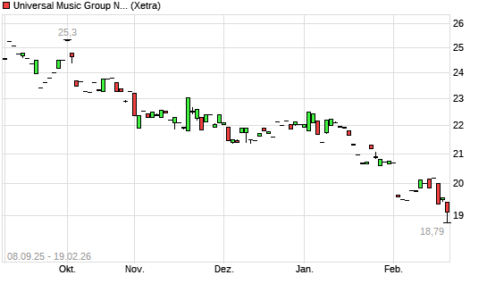 Mit dem Rücksetzer auf 18,93 EUR hat die Universal Music Group-Aktie (ISIN NL0015000IY2) am 18.02.2026 ein neues 12-Monats-Tief erreicht und damit den Kurs vom ...weiterlesen