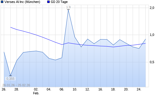 Mit dem Rücksetzer auf 0,71 EUR hat die VERSES TECHNOLOGIES CL.B-Aktie am 24.02.2026 die 20-Tage-Linie nach unten gekreuzt.Der Abstand zur 200-Tage-Linie beträgt aktuell ...weiterlesen