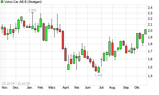 Mit dem Anstieg auf 2,03 EUR hat die VOLVO CAR AB B-Aktie (ISIN SE0021628898) am 20.10.2025 ein neues 6-Monats-Hoch erreicht und damit den Kurs vom 03.10.2025 eingestellt.Die VOLVO CAR AB B-Aktie ...weiterlesen