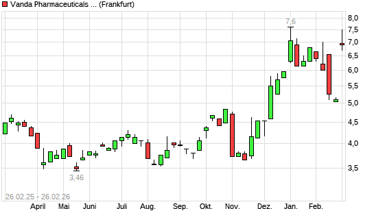 Mit dem Anstieg auf 7,50 EUR hat die Vanda Pharmaceuticals-Aktie (ISIN US9216591084) am 25.02.2026 ein neues 3-Jahres-Hoch erreicht und damit den Kurs vom 08.01.2026 eingestellt.Die ...weiterlesen