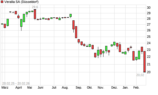 Mit dem Rücksetzer auf 20,08 EUR hat die Varallia SAS-Aktie (ISIN FR0013447729) am 20.02.2026 ein neues 3-Jahres-Tief erreicht und damit den Kurs vom 19.02.2026 ...weiterlesen