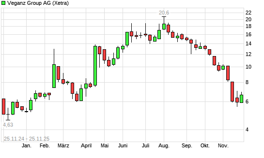 Mit dem Rücksetzer auf 5,74 EUR hat die Veganz Group-Aktie (ISIN DE000A3E5ED2) am 24.11.2025 ein neues 6-Monats-Tief erreicht und damit den Kurs vom 21.11.2025 eingestellt.Die Veganz Group-Aktie ...weiterlesen