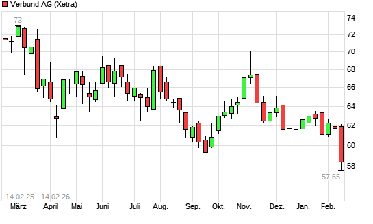 Mit dem Rücksetzer auf 58,35 EUR hat die Verbund-Aktie (ISIN AT0000746409) am 13.02.2026 ein neues 5-Jahres-Tief erreicht und damit den Kurs vom 22.09.2025 eingestellt.Die Verbund-Aktie ...weiterlesen