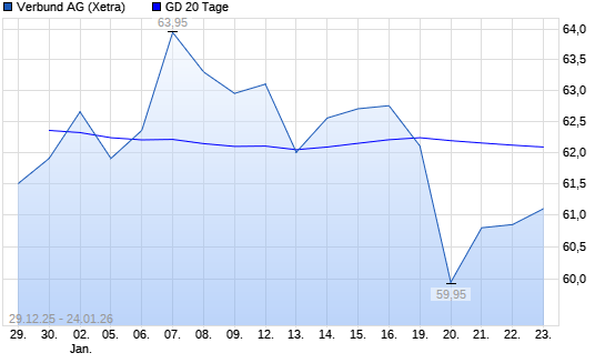 Mit dem Rücksetzer auf 62,15 EUR hat die Verbund-Aktie am 23.01.2026 die 20-Tage-Linie nach unten gekreuzt.Die Verbund-Aktie befindet sich seit dem 08.01.2026 im langfristigen Abwärtstrend ...weiterlesen
