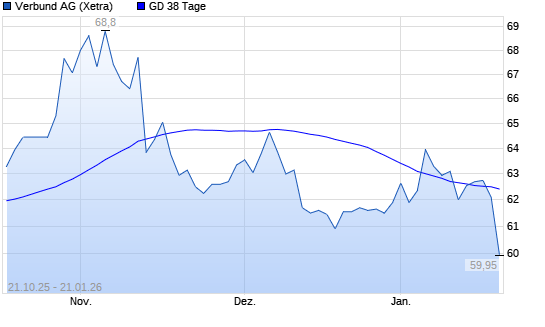 Mit dem Rücksetzer auf 61,00 EUR hat die Verbund-Aktie am 20.01.2026 die 38-Tage-Linie nach unten gekreuzt.Die Verbund-Aktie befindet sich seit dem 08.01.2026 im langfristigen Abwärtstrend ...weiterlesen