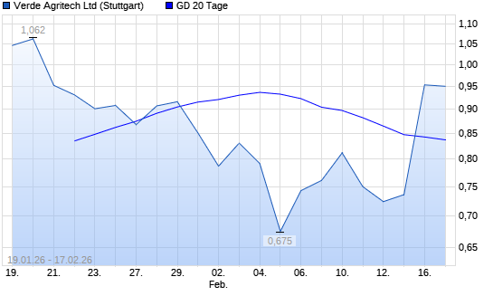 Mit dem Anstieg auf 0,92 EUR hat die Verde Agritech-Aktie am 16.02.2026 die 20-Tage-Linie nach oben gekreuzt.Die Verde Agritech-Aktie befindet sich seit dem 06.10.2025 im ...weiterlesen