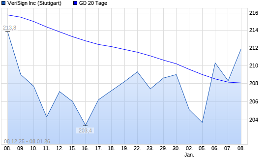 Mit dem Anstieg auf 210,70 EUR hat die Verisign-Aktie am 21.01.2026 die 50-Tage-Linie nach oben gekreuzt.Die Verisign-Aktie befindet sich seit dem 09.10.2025 im langfristigen Abwärtstrend und ...weiterlesen