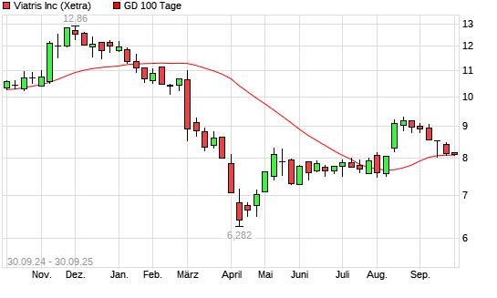 Mit dem Anstieg auf 8,10 EUR hat die Viatris-Aktie am 29.09.2025 die 100-Tage-Linie nach oben gekreuzt.Die Viatris-Aktie befindet sich seit dem 10.09.2025 im langfristigen Abwärtstrend und hat ...weiterlesen