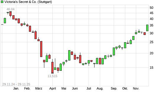 Mit dem Anstieg auf 35,22 EUR hat die Victoria's Secret & Co-Aktie (ISIN US9264001028) am 28.11.2025 ein neues 6-Monats-Hoch erreicht und damit den Kurs vom 27.11.2025 eingestellt.Die Victoria's ...weiterlesen