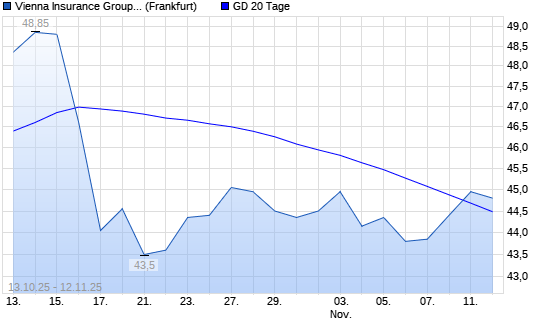 Mit dem Anstieg auf 44,95 EUR hat die Vienna Insurance-Aktie am 11.11.2025 die 20-Tage-Linie nach oben gekreuzt.Die Vienna Insurance-Aktie befindet sich seit dem 13.12.2024 im langfristigen ...weiterlesen