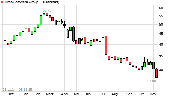 Mit dem Rücksetzer auf 27,78 EUR hat die Vitec Software Group B Ord Shs-Aktie (ISIN SE0007871363) am 07.11.2025 ein neues 3-Jahres-Tief erreicht und damit den Kurs vom 06.11.2025 eingestellt.Der Abstand ...weiterlesen