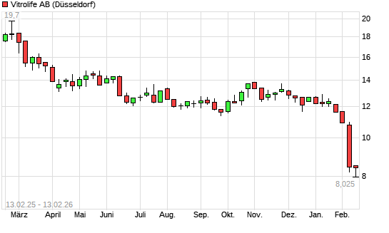 Mit dem Rücksetzer auf 7,88 EUR hat die Vitrolife-Aktie (ISIN SE0011205202) am 12.02.2026 ein neues 5-Jahres-Tief erreicht und damit den Kurs vom 11.02.2026 ...weiterlesen