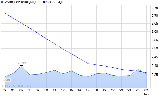 Mit dem Rücksetzer auf 2,31 EUR hat die Vivendi-Aktie am 02.01.2026 die 20-Tage-Linie nach unten gekreuzt.Die Vivendi-Aktie befindet sich seit dem 14.11.2025 im langfristigen Abwärtstrend ...weiterlesen