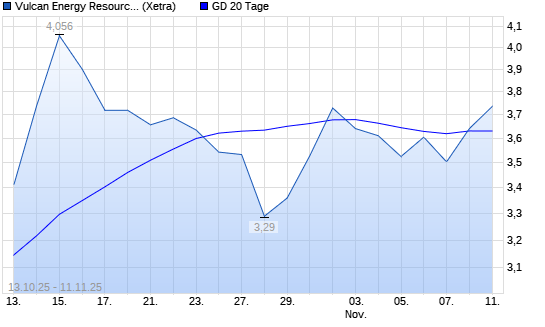 Mit dem Anstieg auf 3,65 EUR hat die Vulcan Energy Resources-Aktie am 10.11.2025 die 20-Tage-Linie nach oben gekreuzt.Die Vulcan Energy Resources-Aktie befindet sich seit dem 18.09.2025 im langfristigen ...weiterlesen