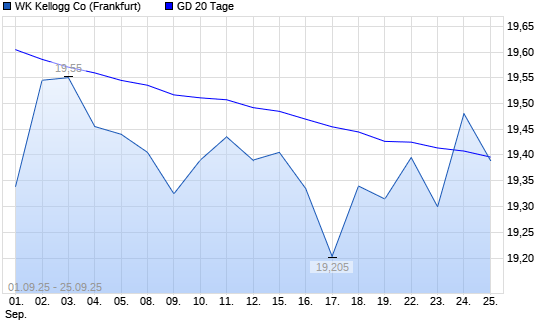 Mit dem Anstieg auf 19,39 EUR hat die WK Kellogg Co [Ordinary Shares]-Aktie am 30.09.2025 die 20-Tage-Linie nach oben gekreuzt.Die WK Kellogg Co [Ordinary Shares]-Aktie befindet sich seit dem ...weiterlesen