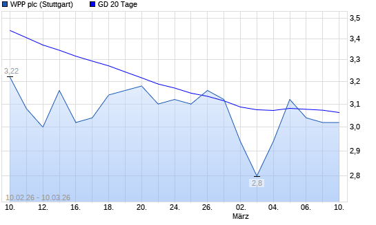 Mit dem Rücksetzer auf 2,92 EUR hat die WPP-Aktie am 09.03.2026 die 20-Tage-Linie nach unten gekreuzt.Die WPP-Aktie befindet sich seit dem 28.02.2025 im langfristigen Abwärtstrend ...weiterlesen
