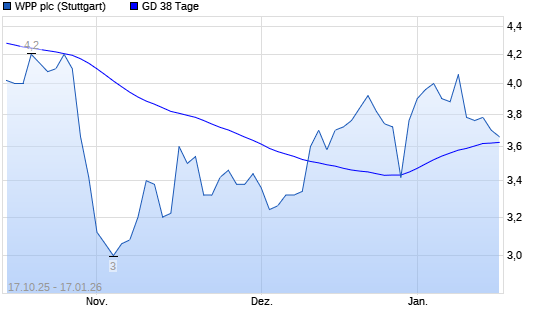 Mit dem Rücksetzer auf 3,64 EUR hat die WPP-Aktie am 16.01.2026 die 38-Tage-Linie nach unten gekreuzt.Die WPP-Aktie befindet sich seit dem 28.02.2025 im langfristigen Abwärtstrend und hat ...weiterlesen