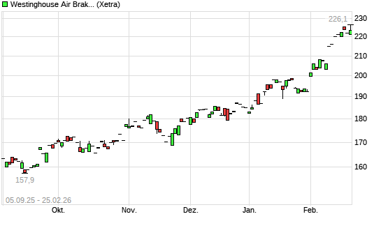 Mit dem Anstieg auf 225,00 EUR hat die Wabtec-Aktie (ISIN US9297401088) am 24.02.2026 ein neues All-Time-High erreicht und damit den Kurs vom 20.02.2026 eingestellt.Die ...weiterlesen