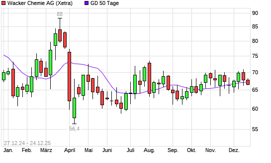 Mit dem Anstieg auf 68,35 EUR hat die Wacker Chemie-Aktie am 29.12.2025 die 50-Tage-Linie nach oben gekreuzt.Die Wacker Chemie-Aktie befindet sich seit dem 12.12.2025 im langfristigen Aufwärtstrend ...weiterlesen