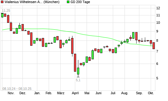 Mit dem Rücksetzer auf 7,20 EUR hat die Wallenius Wilhelmsen-Aktie am 07.10.2025 die 200-Tage-Linie nach unten gekreuzt.Die Wallenius Wilhelmsen-Aktie befand sich seit dem 23.07.2025 im ...weiterlesen
