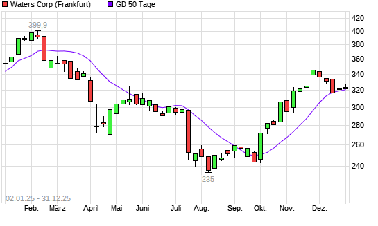 Mit dem Rücksetzer auf 322,10 EUR hat die Waters-Aktie am 30.12.2025 die 50-Tage-Linie nach unten gekreuzt.Die Waters-Aktie befindet sich seit dem 05.11.2025 im langfristigen Aufwärtstrend ...weiterlesen