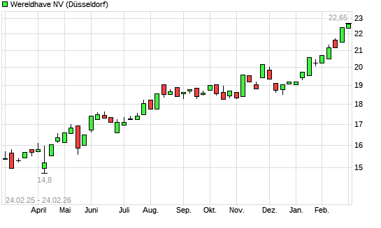 Mit dem Anstieg auf 22,25 EUR hat die Wereldhave-Aktie (ISIN NL0000289213) am 23.02.2026 ein neues 5-Jahres-Hoch erreicht und damit den Kurs vom 18.02.2026 eingestellt.Der Abstand ...weiterlesen