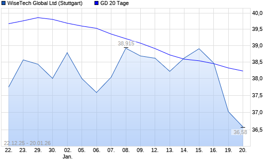 Mit dem Rücksetzer auf 36,26 EUR hat die WiseTech Global-Aktie am 19.01.2026 die 20-Tage-Linie nach unten gekreuzt.Die WiseTech Global-Aktie befindet sich seit dem 27.08.2025 im langfristigen ...weiterlesen