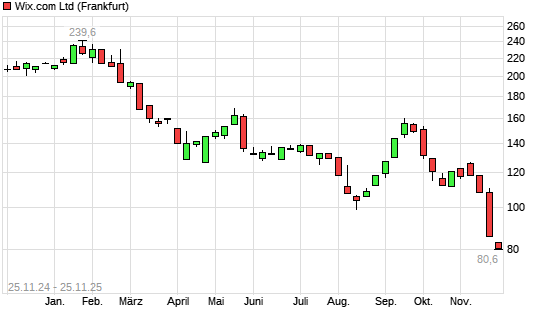 Mit dem Rücksetzer auf 83,00 EUR hat die Wix.com-Aktie (ISIN IL0011301780) am 24.11.2025 ein neues 12-Monats-Tief erreicht und damit den Kurs vom 21.11.2025 eingestellt.Die Wix.com-Aktie ...weiterlesen