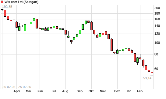 Mit dem Rücksetzer auf 53,60 EUR hat die Wix.com-Aktie (ISIN IL0011301780) am 24.02.2026 ein neues 3-Jahres-Tief erreicht und damit den Kurs vom 23.02.2026 ...weiterlesen