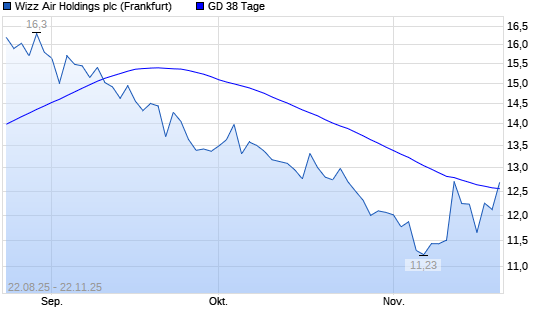 Mit dem Anstieg auf 12,69 EUR hat die Wizz Air Holdings-Aktie am 21.11.2025 die 38-Tage-Linie nach oben gekreuzt.Die Wizz Air Holdings-Aktie befindet sich seit dem 05.06.2025 im langfristigen ...weiterlesen