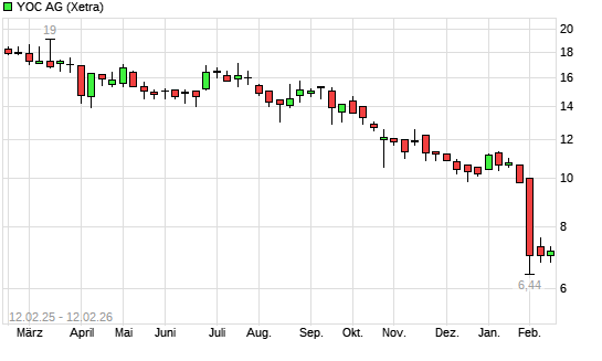 Mit dem Rücksetzer auf 6,78 EUR hat die YOC-Aktie (ISIN DE0005932735) am 11.02.2026 ein neues 5-Jahres-Tief erreicht und damit den Kurs vom 30.01.2026 eingestellt.Die YOC-Aktie befindet ...weiterlesen