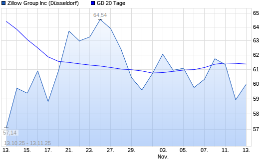 Mit dem Rücksetzer auf 59,88 EUR hat die ZILLOW GROUP-Aktie am 12.11.2025 die 20-Tage-Linie nach unten gekreuzt.Die ZILLOW GROUP-Aktie befindet sich seit dem 30.09.2025 im langfristigen ...weiterlesen