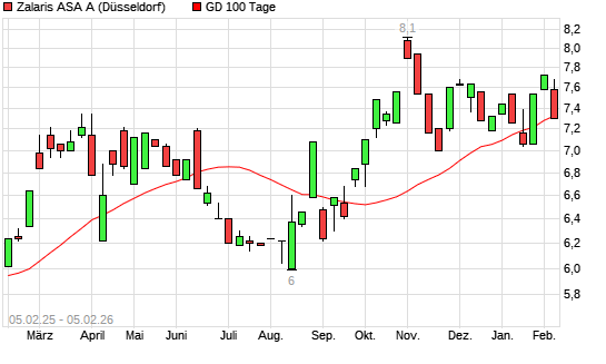 Mit dem Rücksetzer auf 7,30 EUR hat die Zalaris-Aktie am 04.02.2026 die 100-Tage-Linie nach unten gekreuzt.Die Zalaris-Aktie befindet sich seit dem 19.09.2025 im langfristigen Aufwärtstrend ...weiterlesen