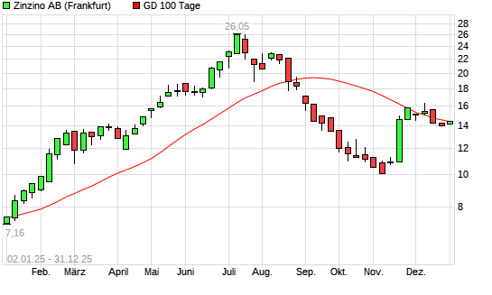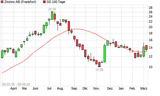Mit dem Anstieg auf 13,80 EUR hat die Zinzino-Aktie am 05.03.2026 die 100-Tage-Linie nach oben gekreuzt.Die Zinzino-Aktie befindet sich seit dem 11.12.2025 im langfristigen ...weiterlesen