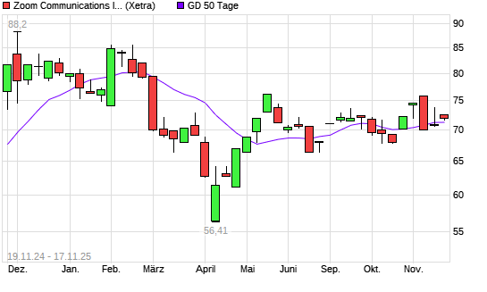 Mit dem Rücksetzer auf 69,56 EUR hat die Zoom Video Communications-Aktie am 18.11.2025 die 50-Tage-Linie nach unten gekreuzt.Die Zoom Video Communications-Aktie befindet sich seit dem 21.10.2025 ...weiterlesen