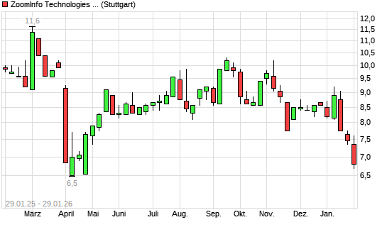 Mit dem Rücksetzer auf 7,15 EUR hat die ZoomInfo Technologies-Aktie (ISIN US98980F1049) am 28.01.2026 ein neues 6-Monats-Tief erreicht und damit den Kurs vom 26.01.2026 eingestellt.Die ...weiterlesen