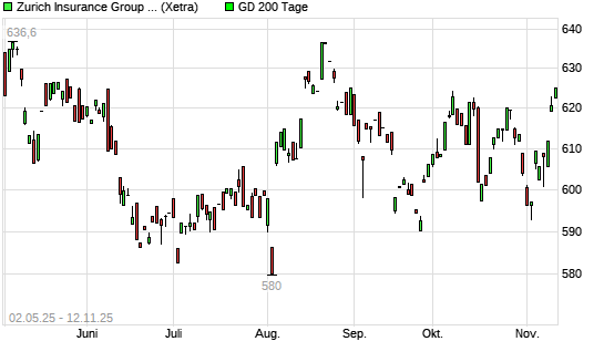 Mit dem Anstieg auf 627,80 EUR hat die Zurich Insurance Group-Aktie am 11.11.2025 die 200-Tage-Linie nach oben gekreuzt.Die Zurich Insurance Group-Aktie befand sich seit dem 31.10.2025 im langfristigen ...weiterlesen