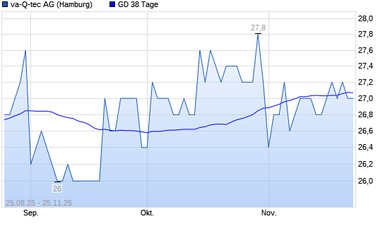 Mit dem Rücksetzer auf 27,00 EUR hat die va-Q-tec-Aktie am 24.11.2025 die 38-Tage-Linie nach unten gekreuzt.Die va-Q-tec-Aktie befindet sich seit dem 29.08.2024 im langfristigen Aufwärtstrend ...weiterlesen